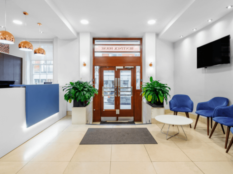 The magnificent exterior is mirrored inside, with roomy office space illuminated by natural light, giving you the ideal venue to host meetings, catch up on work or meet a client in any number of the nearby fashionable restaurants and cafes. Though the advantages of Bentinck House are clear to see, its location is perhaps the best received.